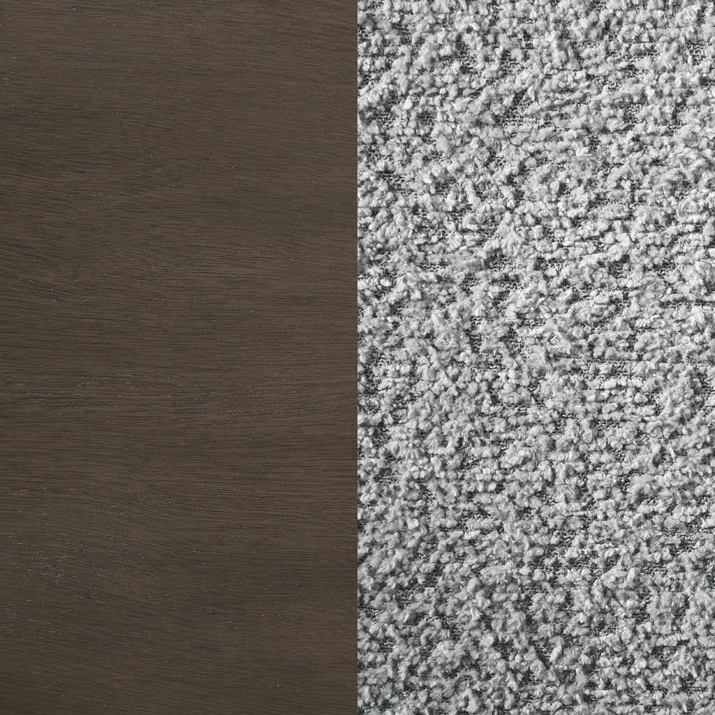 Elevate your dining space with this beautifully crafted dining chair, blending intricate detailing with luxurious comfort. The chair features a molded geometric design on the backrest, offering a striking visual appeal. Constructed from solid wood and embossed, this chair is finished in a dark brown hue, adding warmth to any dining room. The seat and front of the backrest are upholstered in a soft, textured grey fabric, providing both style and comfort. Whether used as a dining chair or an accent piece, this chair is sure to make a statement. Key Features: • Dining side chair with padded seat and backrest for a comfortable dining experience • Finished in a dark brown tone, bringing warmth to any room • Molded geometric design on the backrest adds visual texture and elegance • Sleek and versatile design suitable for modern or transitional spaces • Sturdy construction with solid wood and embossed mdf ensures durability