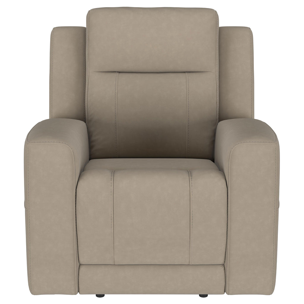 Indulge yourself in the smooth, stylish look and incredible comfort of this modern two-piece reclining sofa set. Designed for relaxation without sacrificing style, the set offers a three-seat sofa with two manual recliners and a two-seat loveseat. A center storage console adds functionality to the loveseat, offering a pair of cupholders and an easy spot for remotes and other small essentials. Sleek faux leather upholstery complements perfectly, with understated seaming and delicate tufting that adds a tailored approach to impeccable comfort. Sinuous spring construction complements each seat, with recliners operated with the simple pull of a lever for optimal relaxation. Key Features: • A two-piece reclining sofa set lends a modern look with smooth cushions and seamless track arms • Manual recline function offers two relaxing recliners each in the sofa and loveseat • Smooth faux leather upholstery adds a rich look and feel perfect for modern living spaces • Loveseat includes a center storage console with two built-in cupholders and a padded top • Seats feature sinuous springs while backs offer webbed decking for top-quality support and comfort